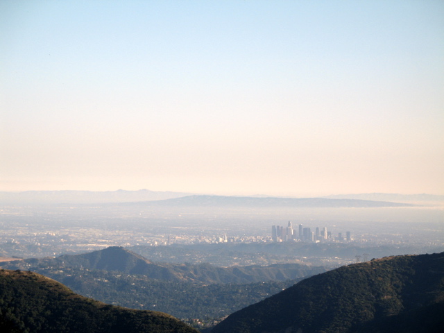 In any case one of the only places I'll ride in this heat is the nearby forest where it's noticeably cooler. I had a nice little late afternoon jaunt up there last weekend and snapped this little shot of downtown L.A. Thank goodness there's a couple of places nearby to cool down when it's this hot.