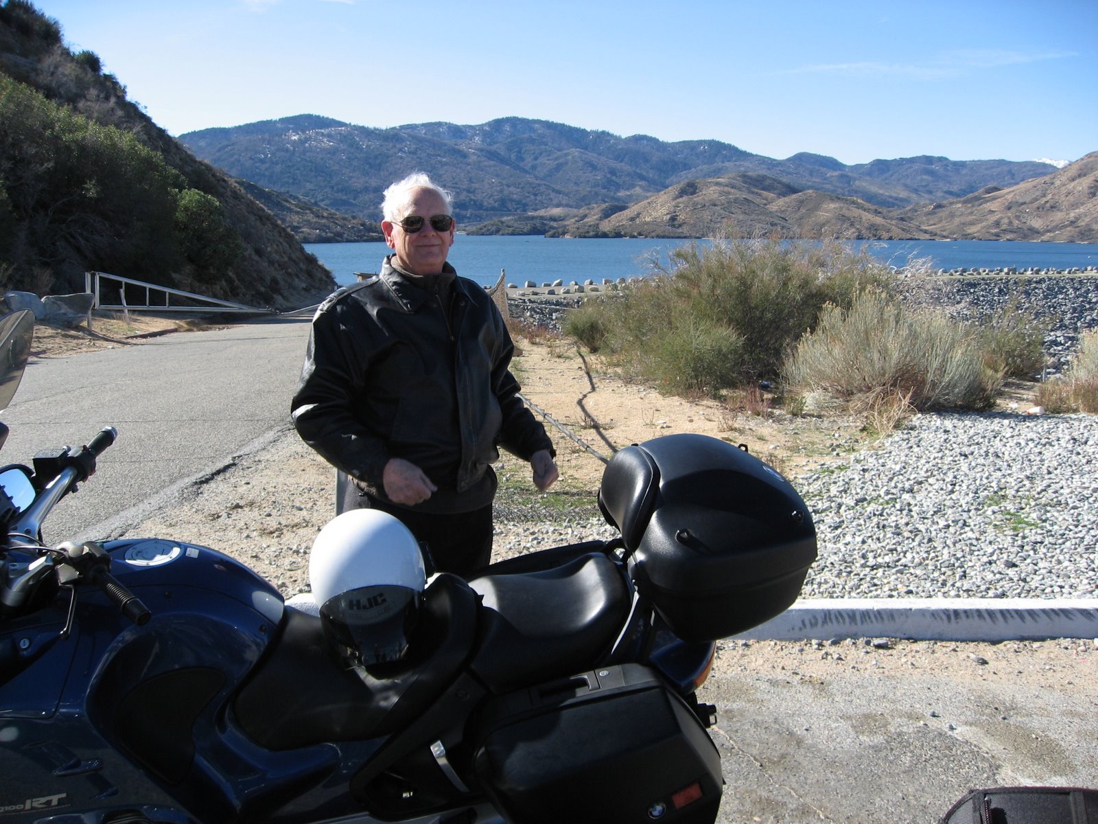 Once we got onto Hiway 138 it turns into a fairly twisting road for a few miles. I never made it past the first big turn over a year ago and so I was very relieved to see that I was able to keep up fairly well with Jimmy on this road. We headed up toward Silverwood Lake and eventually came up to the lake through a back road that leads up to the dam.