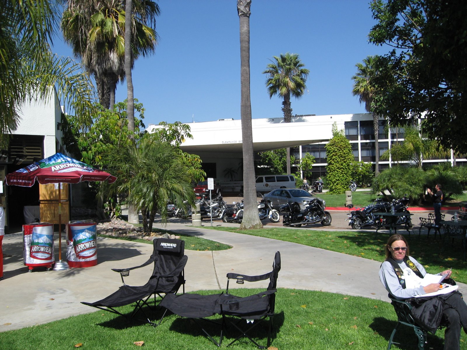 The ST&R (Star Touring & Riding) BBQ event in San Diego over 2 nights March 28-30, 2008 was a first for me on several levels. My first ever overnight adventure on a motorcycle, so I had to pack carefully as space is limited with just 2 saddle bags and a "sissy bar" bag on the back, compared to loading up the trunk of the Lexus with everything we own. I took more than enough of everything as it turned out anyway. There were going to be about 300 motorcycles and riders from a number of STAR chapters around the western USA, including ours from Orange County chapter 230, staying at the Sheraton 4 Points hotel off the 805 Fwy in San Diego.