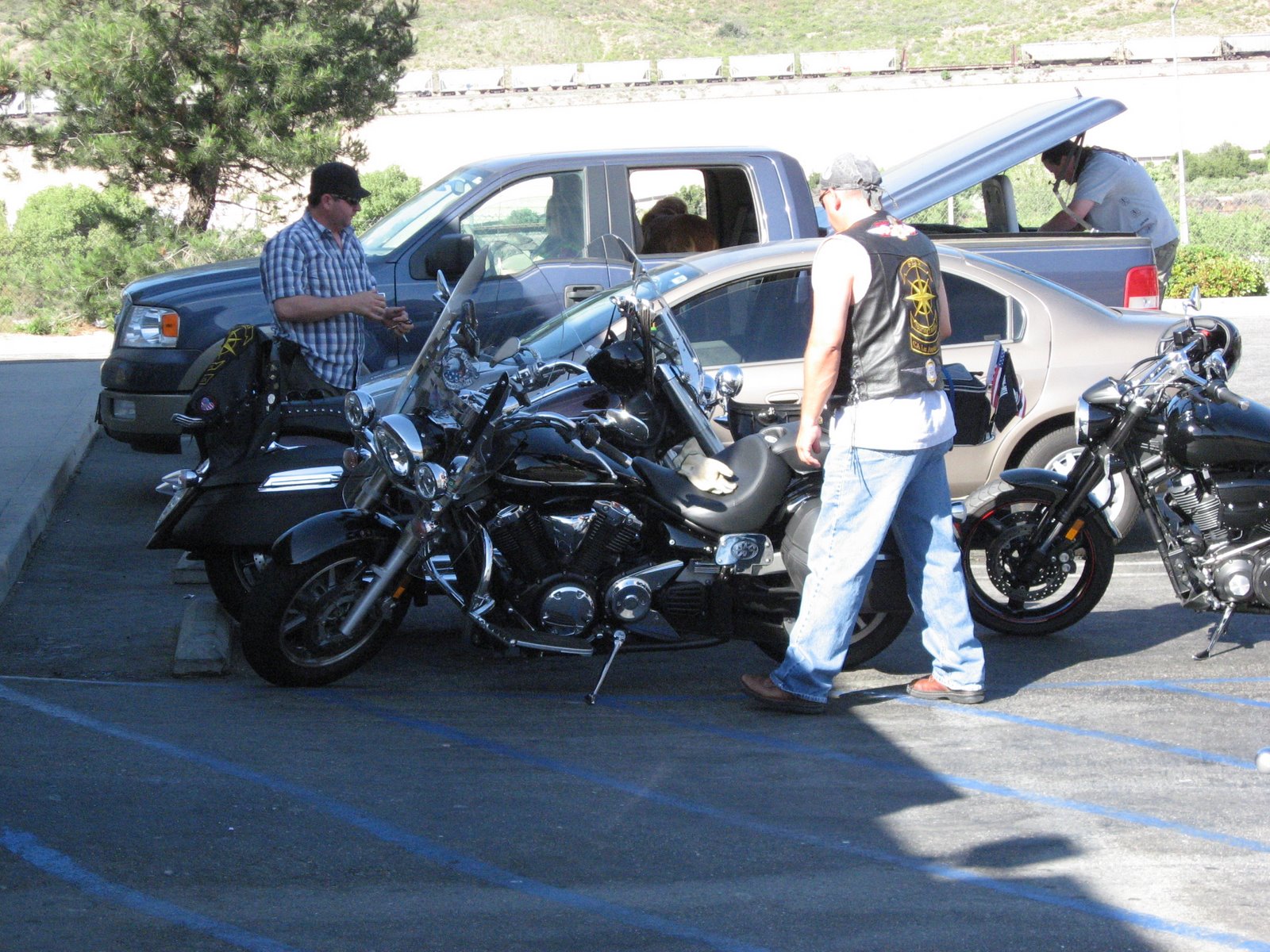 Where was all the excitement on the trip you ask? When I left the group on the 210 Freeway and headed back towards the 57, traffic bogged down as I passed the 605 turn-off and with temps still over 100, I fell in behind another rider splitting the lane in the diamond-lane. CRAZY RIDING, GOING IN-BETWEEN THE CARS. Came on a fender bender in lanes and then it slowed down again as I passed a silver Honda Goldwing laying on it's side off the road on the embankment. CHP was there and it looked like a truck/motorcycle encounter but no rider was visible from the far left lane as I went by. After that it was crank the throttle and head home, great ride.