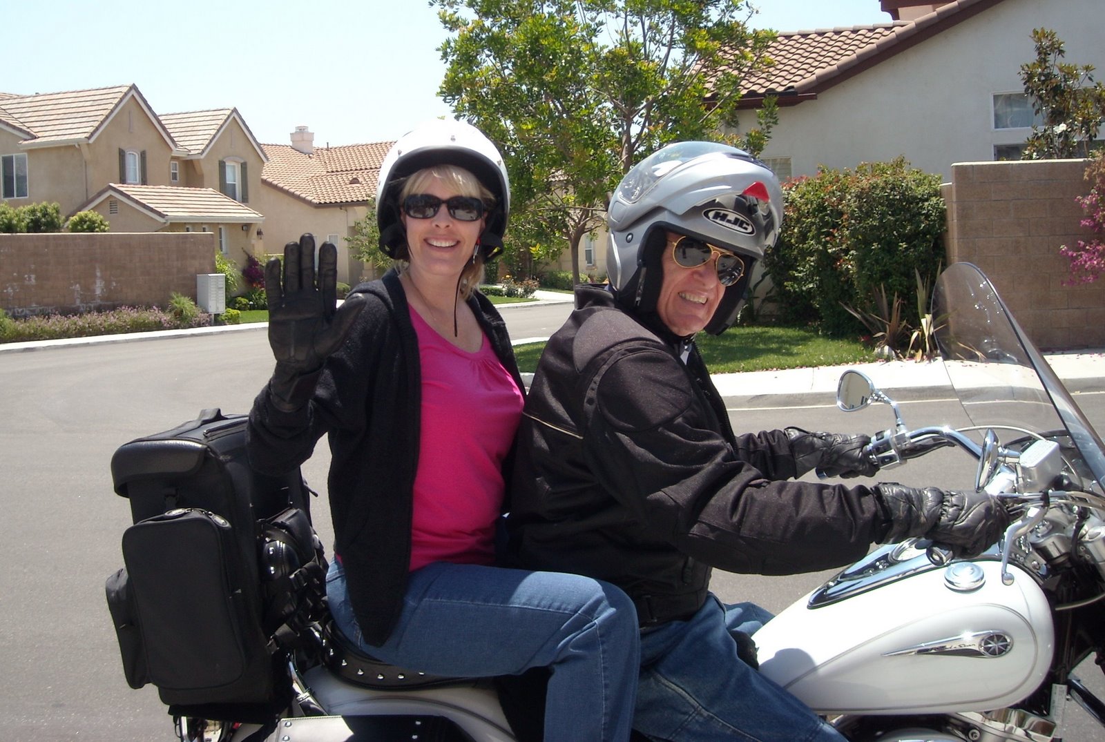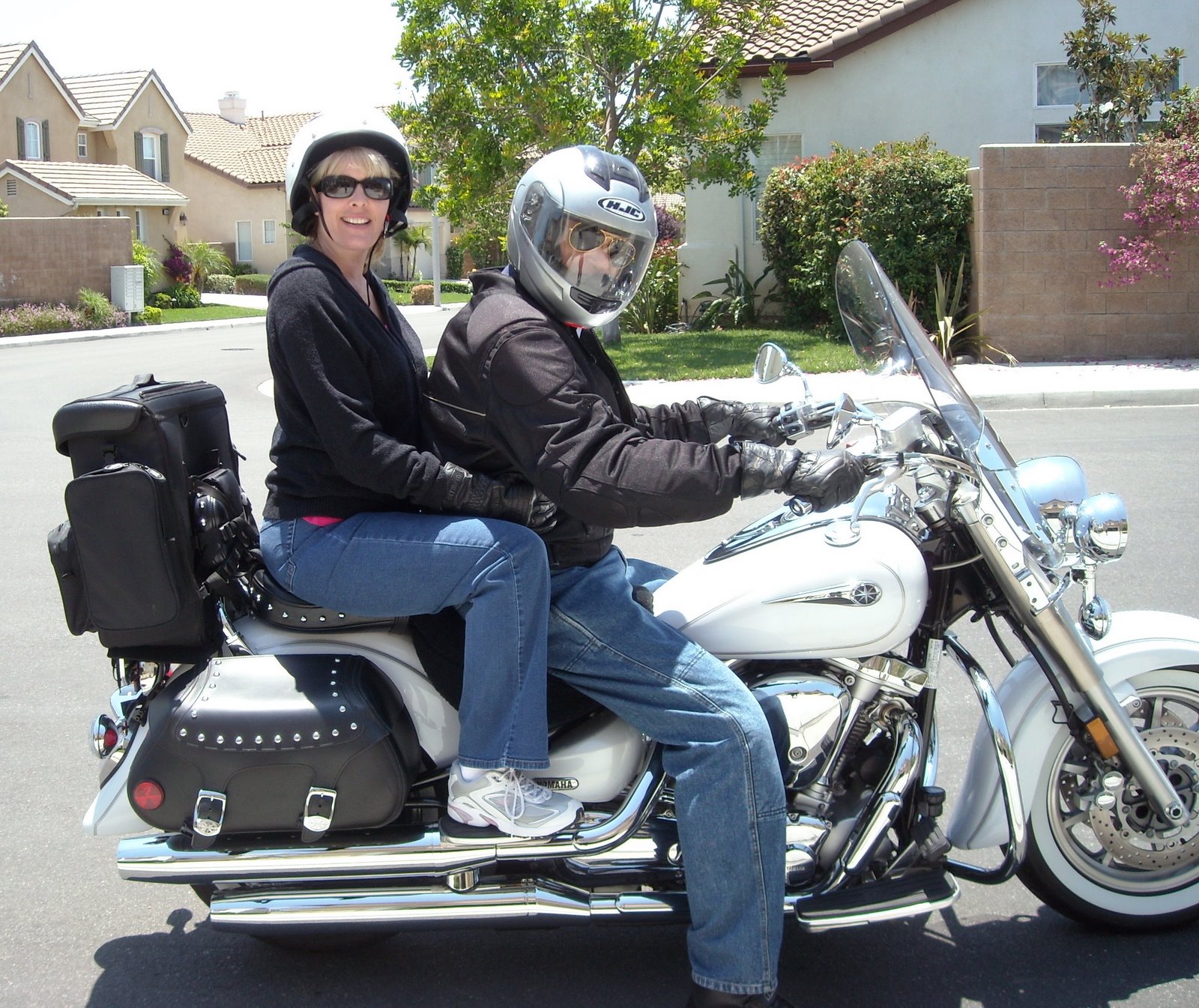 Sheila our neighbor gets a ride as passenger (pillion) on the Road Star today. Went for a 2-3 mile ride around the neighborhood including Alta Vista Drive and several others. All went well and now I will probably have one or two others interested in a free ride. Only time it gets to be a challenge is coming to a stop at a light or other location. Balance is very important since the extra weight and higher center of gravity make it important to be lined up and wheels straight. This was my first passenger on regular streets in traffic.