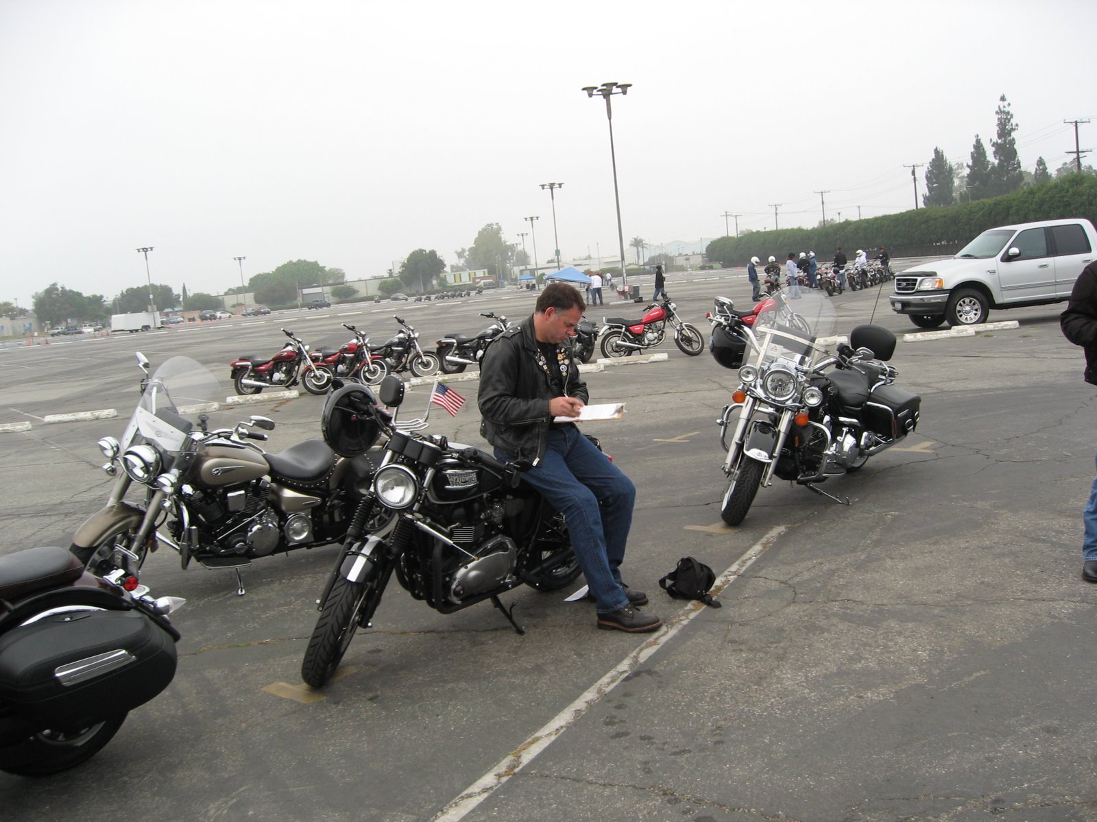 I met up with John R., Tom from Chino, and myself and we rode over to a Denny's near the class. After breakfast we headed over to the Cerritos College parking lot and the "grinder". Other members of Star included, Don, Gregg, Tony (on a new Raider), along with John, Tom and myselfwere ready to go. There were other classmembers but I failed to get their names.