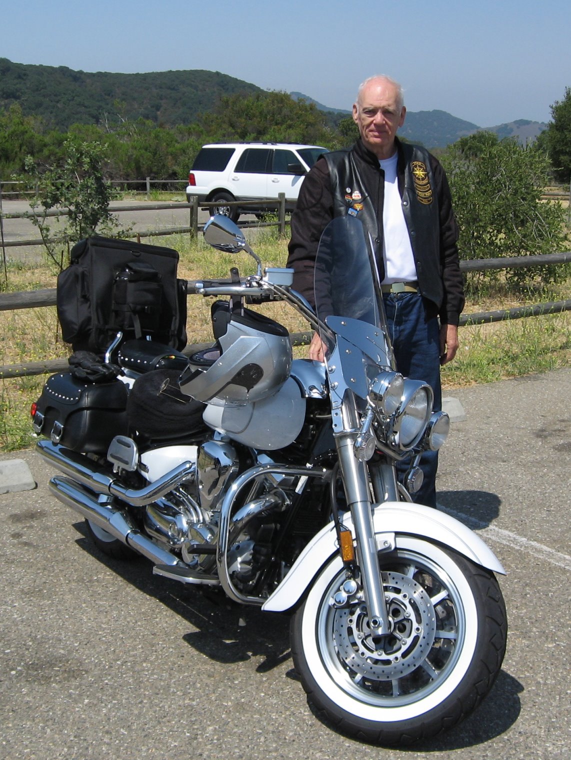 2006 Yamaha Road Star 1700 Silverado- Pearl White. Purchased from a private party with only 1815 miles on it. Weighs 780 lbs. with fuel and the new hard bags. My first lesson was 11/04 took MSF class in Fullerton and away I went. This is my 4th motorcycle if you can believe that. So far I put 26,500 miles on the Road Star since I bought it 09/27/07, The ODO shows 28,300 total miles.