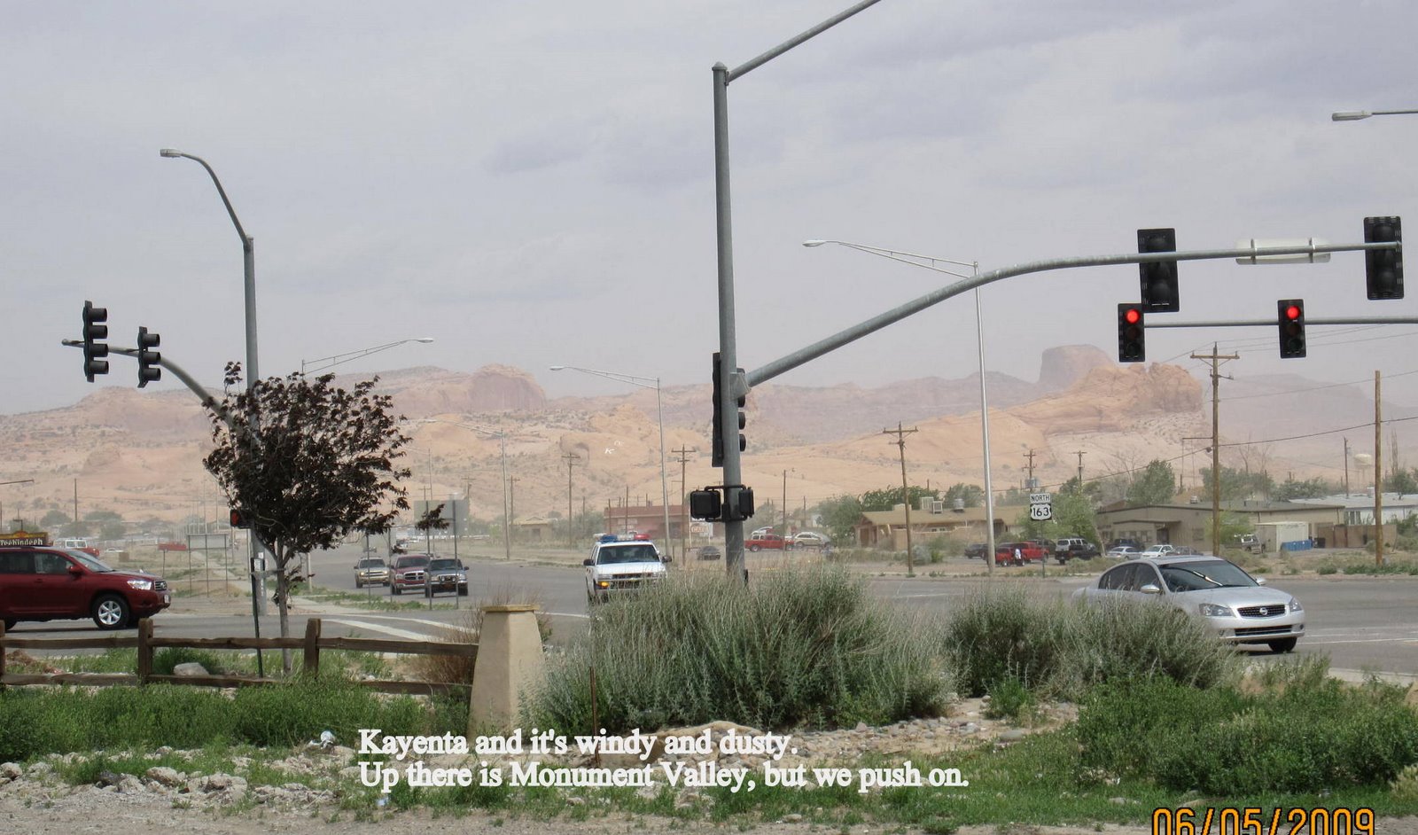 Heading up route 89 to connect to Route 160 we hit some breezes but no real wind and it's somewhat cloudy keeping the heat level down. Did I say no wind? When we hit Kayenta, the gateway to Monument Valley, we both start to question our sanity because of the high wind.