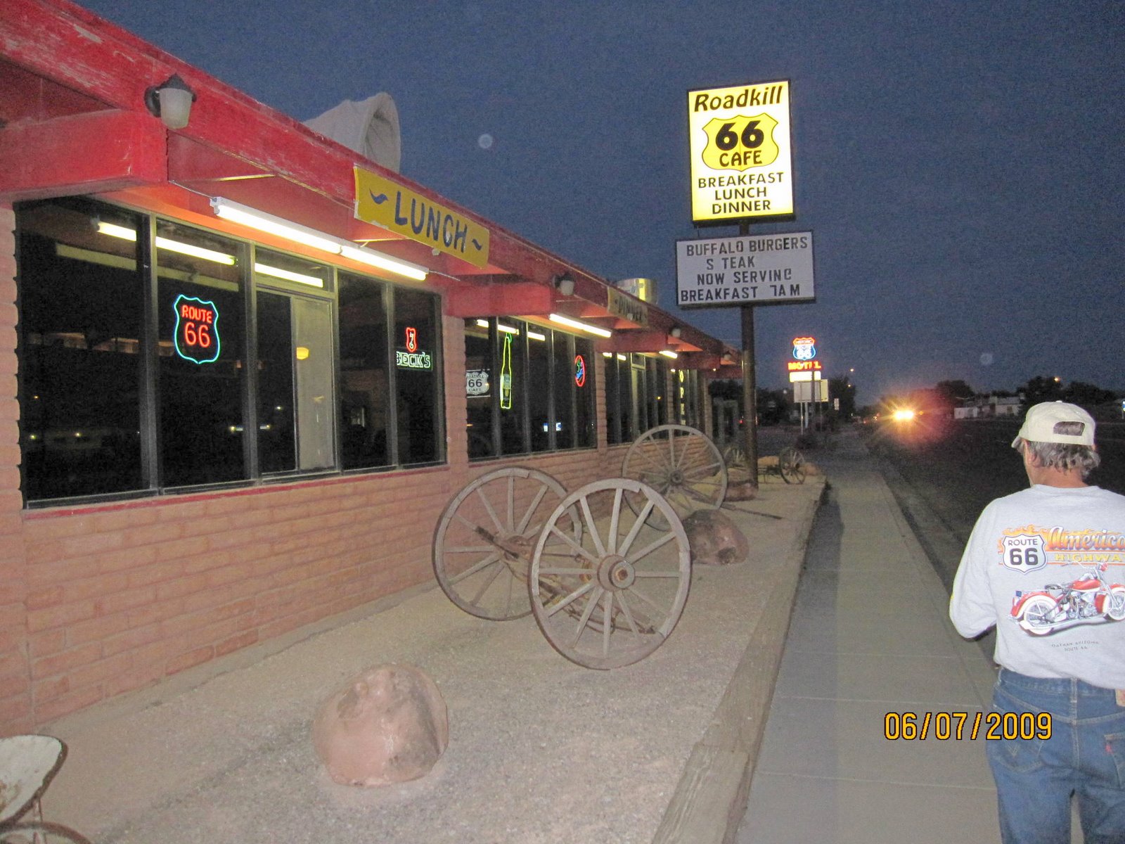 Arriving in Kingman we are both getting low on fuel since we did not stop after filling up in Ludlow. Gas up and stop for lunch at the Cracker Barrel Restaurant I ate at on the Laughlin trip. I live for their turkey lunch special. Back on the road stop in Seligman for gas.