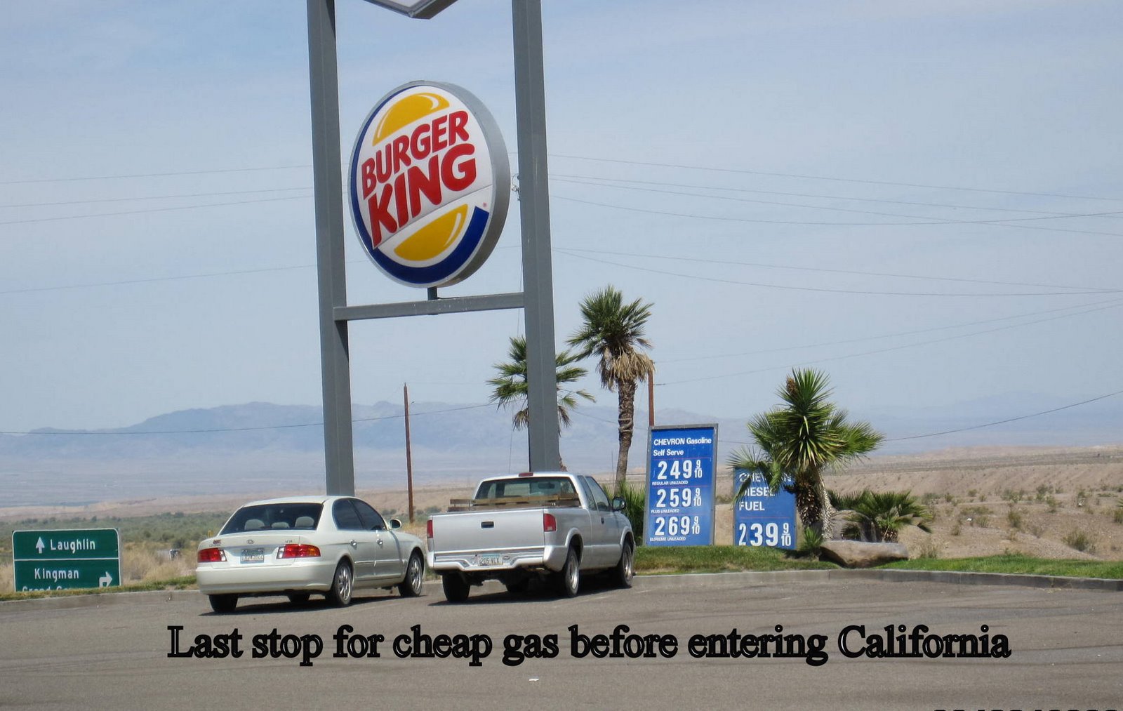 Our last gas stop in Arizona for cheap gas. One thing that I noticed along the way is the openness of the area. The views on the desert just seemed to go on and on, plus there were no windows or door pillars to block the view.