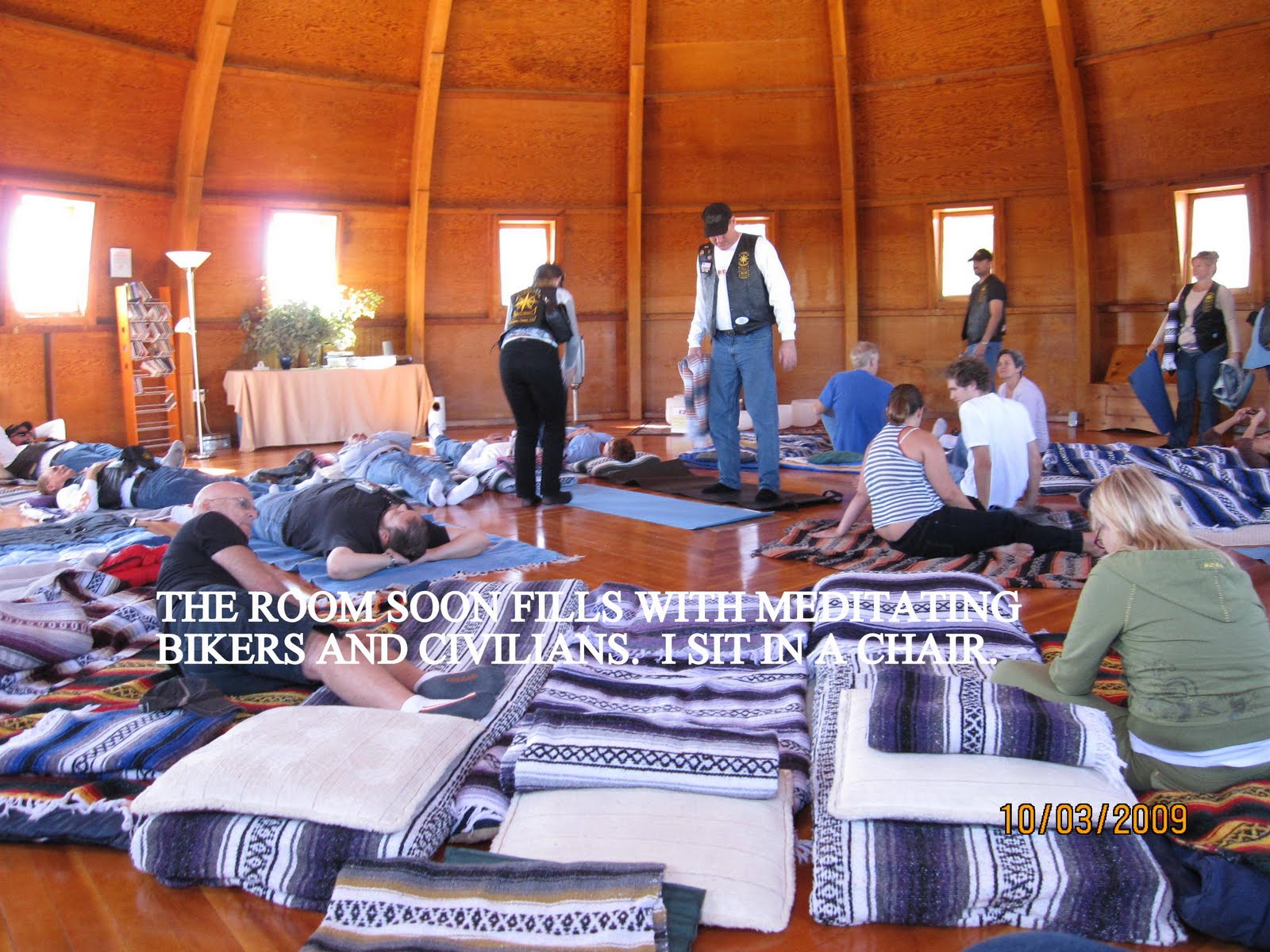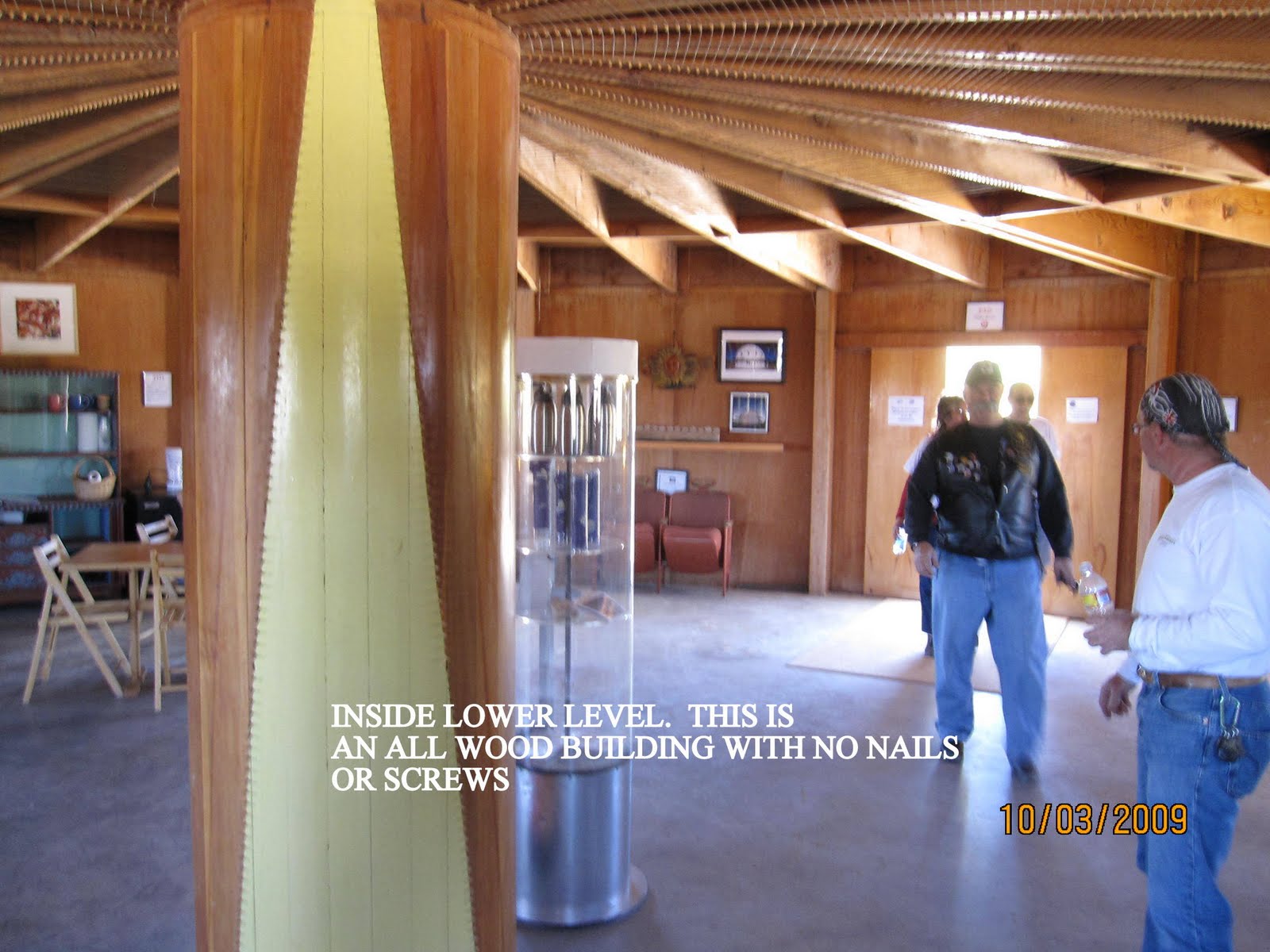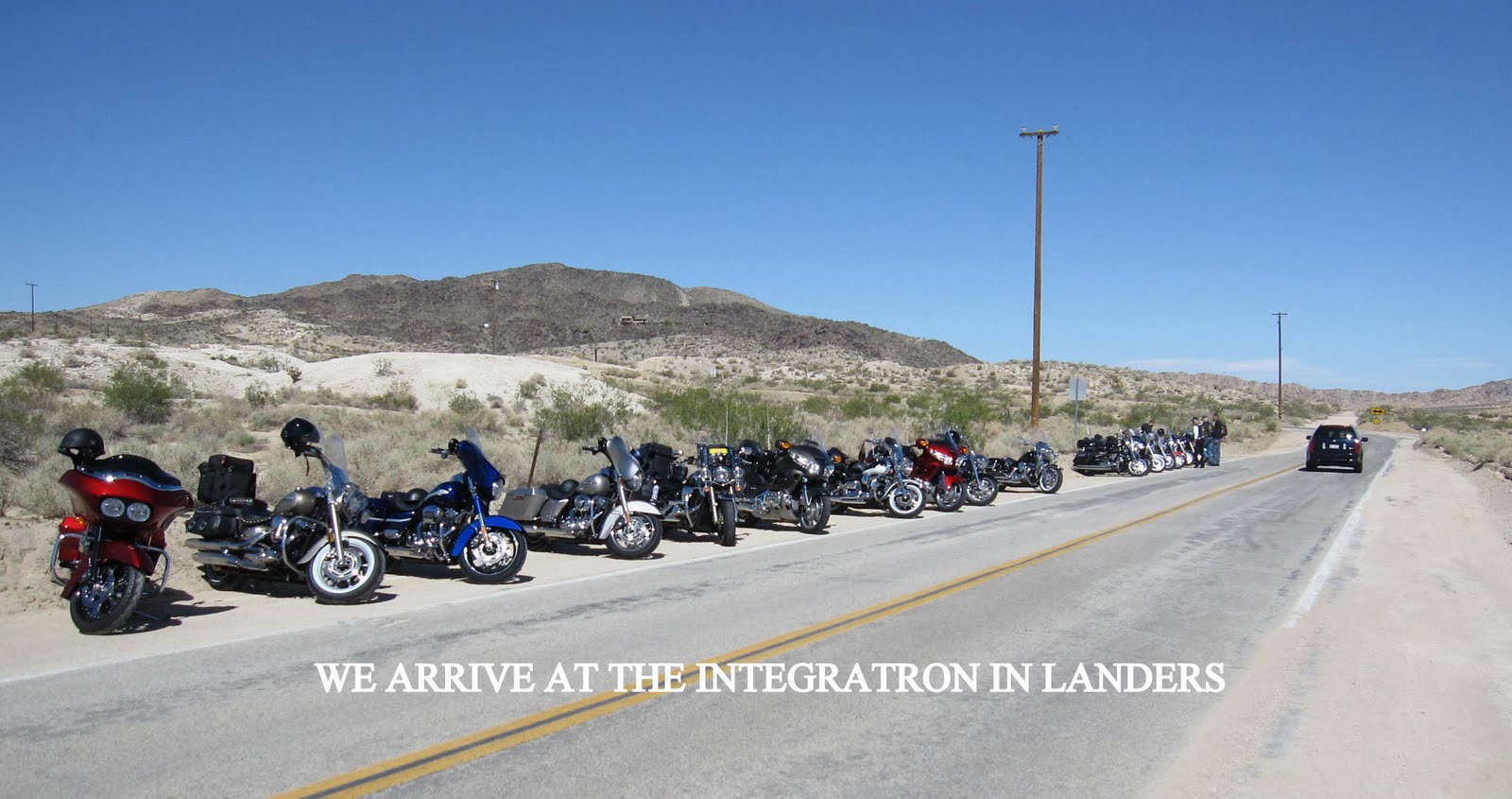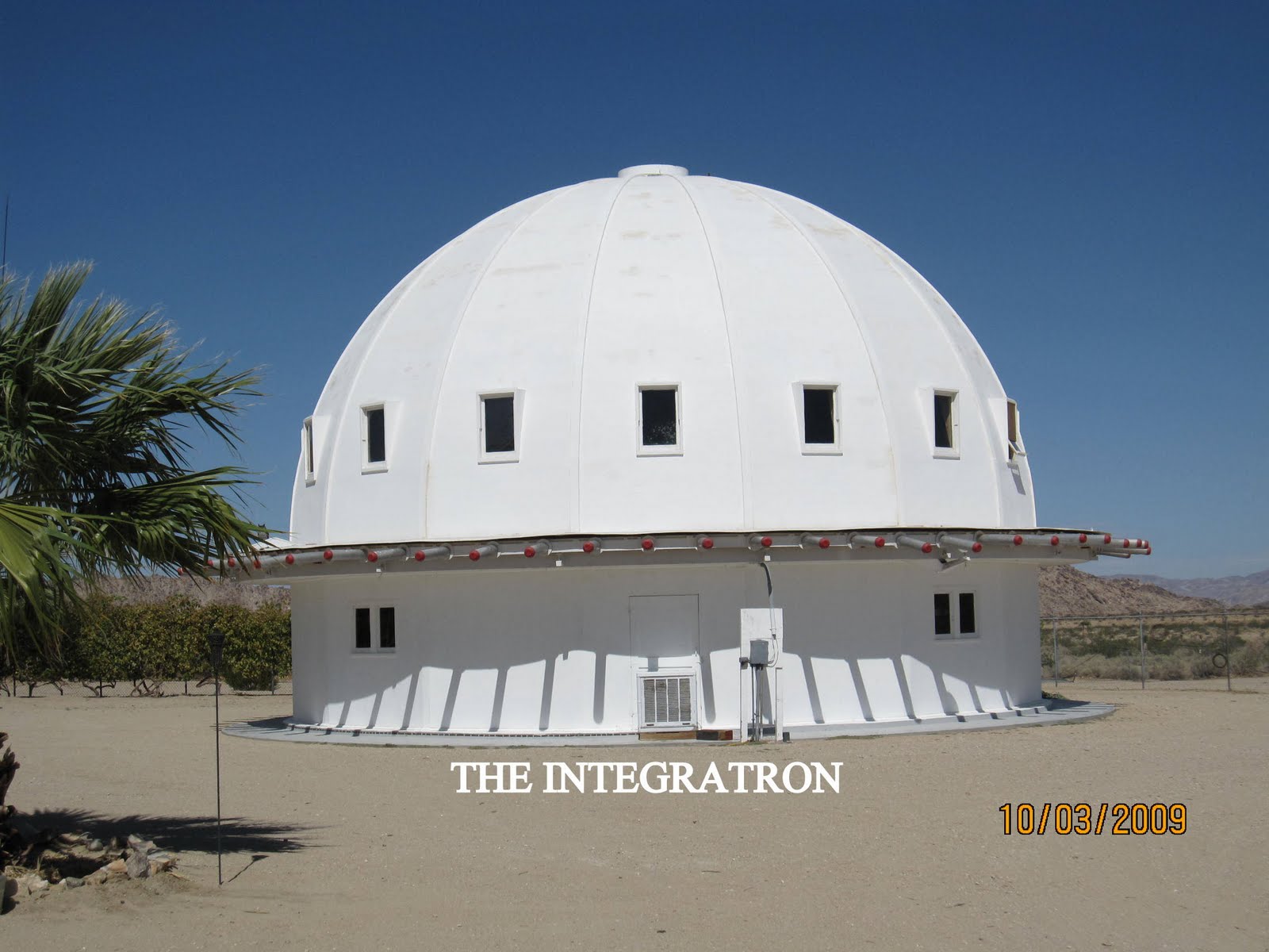 INTEGRATRON RIDE Saturday 10/04 (long report) Our destination for this Saturday ride is the "Integratron" in Landers out beyond Yucca Valley. The Integratron is an all wood building that was built for some electrical experiments years ago. It never achieved any results but as an all wooden building has some unusual sound characteristics. The 2 level building is all hollow upstairs with a round parabolic shaped ceiling anchored at the top by a cement ring with a hole in it. If you stand directly under the hole in the center of the room and say something the sound reverberates through your head and body and sounds like speaking to a large outdoor or indoor audience with lots of echos and large speakers. Very strange no doubt. If you whisper from one side of the room, people on the opposite side can hear you clearly, which is why I got strange looks when I said my watch was running backwards from the electrical effects.