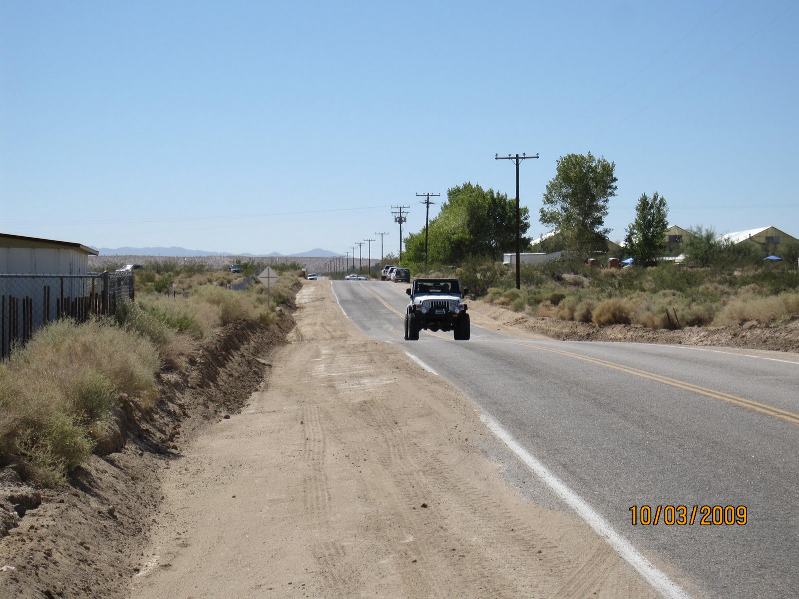 RIDE STARTS WITH MORNING MEETING... We arrive in Landers and the Integratron... The parking lot is very sandy so we all park out here off the street.
