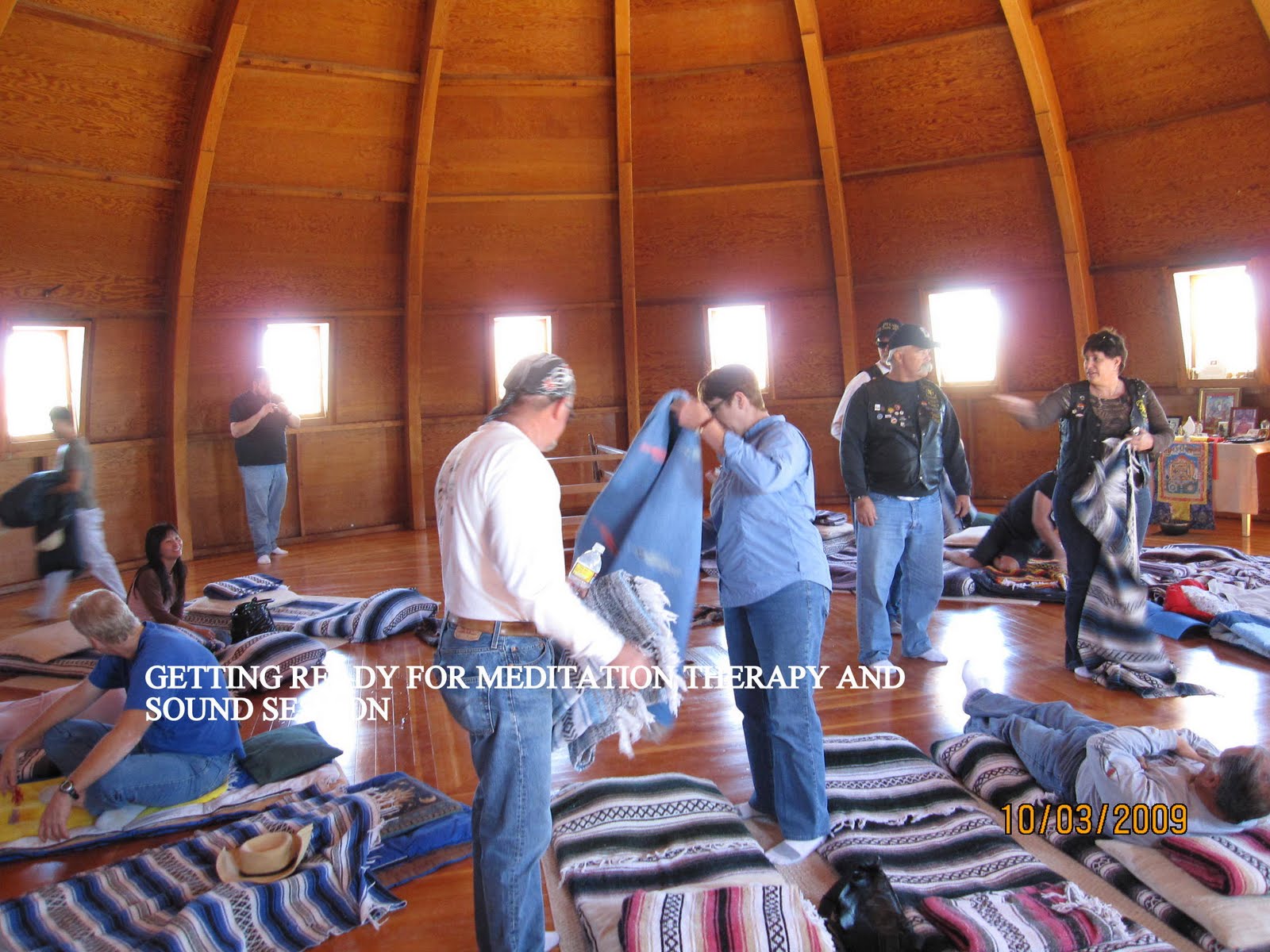 There was a presentation that covered some of the history of the builder and the building. When they got to the part about aliens I sort of lost interest. Everyone was invited to take a blanket and lay out on the floor for meditation and a sound massage session with sounds provided by vibrations from crystal bowls and goblets. Remember how you can run your finger around the rim of a crystal goblet and get a nice humming sound? Well here in the Integratron it really is magnified and enhanced creating a peaceful and relaxing interlude while laying on the blankets. I however sat in a plastic chair. Several fell asleep based on snoring sounds. CLICK ON THE VIDEO FOR A SAMPLE OF THE SOUNDS AND THE MEDITATION.