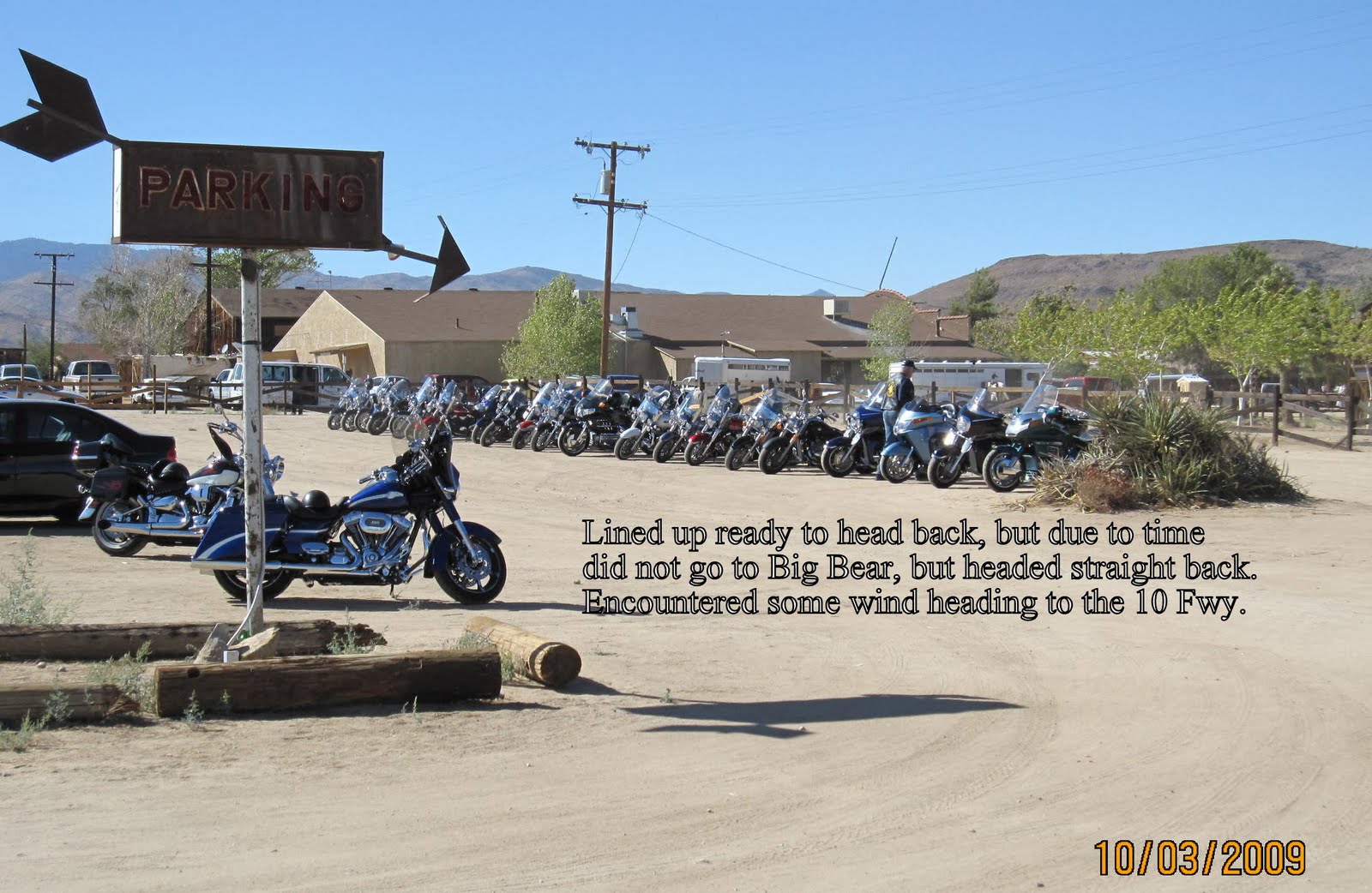 This is one of the real benefits of riding with STAR chapter 230 as I would have never visited this attraction if it were not for the group and Dan our president planning this ride. This is what makes riding a motorcycle with some great friends and living through a real adventure on the road worth the ride. I'm glad I went. Great trip even though after taking a fair amount of time here and then heading back to Pioneer Town Restaurant near Yucca for a LONG lunch we wound up getting ready to leave at 3 pm. The route originally was to head on to Big Bear via the back (Hwy 18) way, but time was getting short. All three groups headed back the way we came, but this time we hit some wind. I seriously dislike wind. If you ever would catch me making an attempt at some sort of "prayer" it would be riding in a 40-50 mph wind coming from the side. This was not that bad luckily and on we went back to Orange with no real problems or incidents.