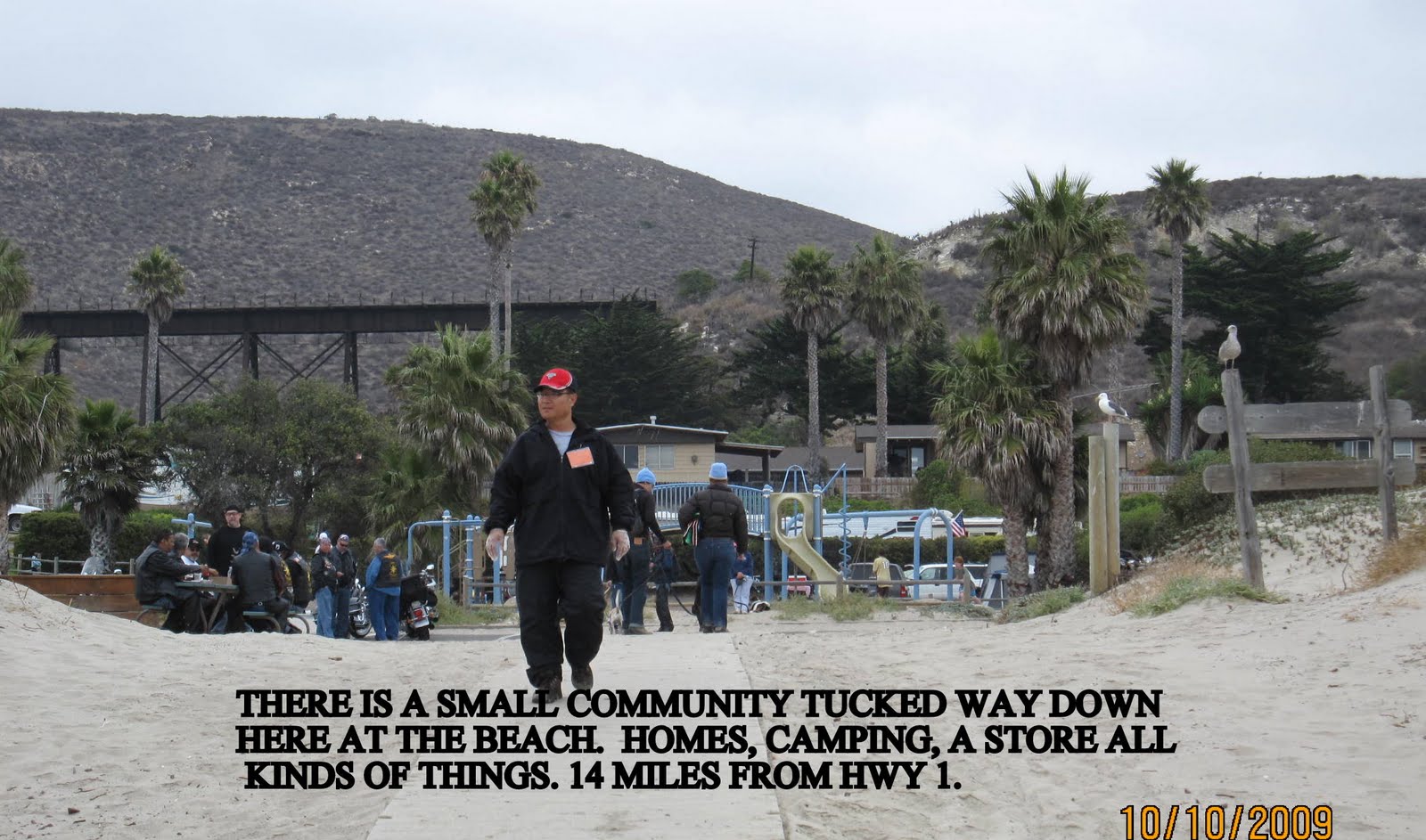 Here's the route and there will be more pictures later. The "B" FLAG is WHERE WE MEET OTHER CHAPTERS, THE "C" FLAG IS THE BEACH AND "D" IS OUR GAS STOP IN BUELLTON. View Larger Map We arrive at the meeting spot. This is Chapter 415 at a gas stop, I know a few of them. I met Art on the Laughlin Ride at the Grand Canyon Caverns-good to see him again. HERE IS VIDEO OF 415 FINALLY SHOWING UP AT THE TURN-OFF the beach is really very nice and clean just a bit cloudy today.